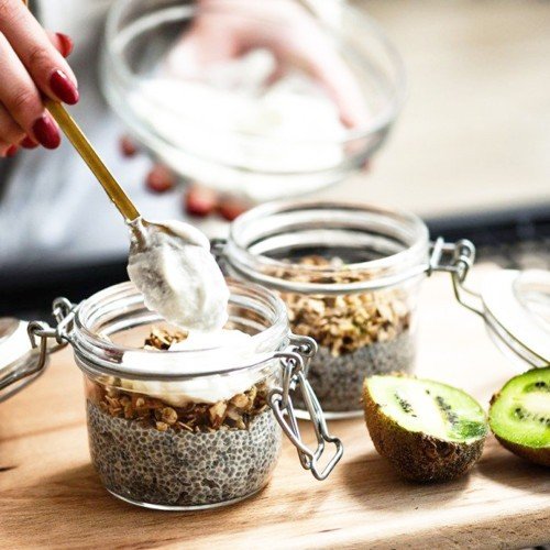 - ابدأ يومك بوجبة فطور غنية بالألياف مثل الشوفان والفواكه الطازجة.